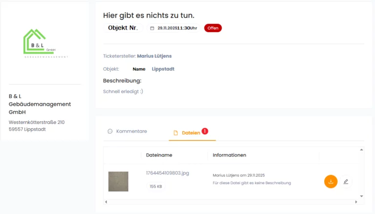 Tickets können durch unsere Mitarbeiter vor Ort erstellt werden, aber auch durch die Mieter, Eigentümer und die Hausverwaltung.